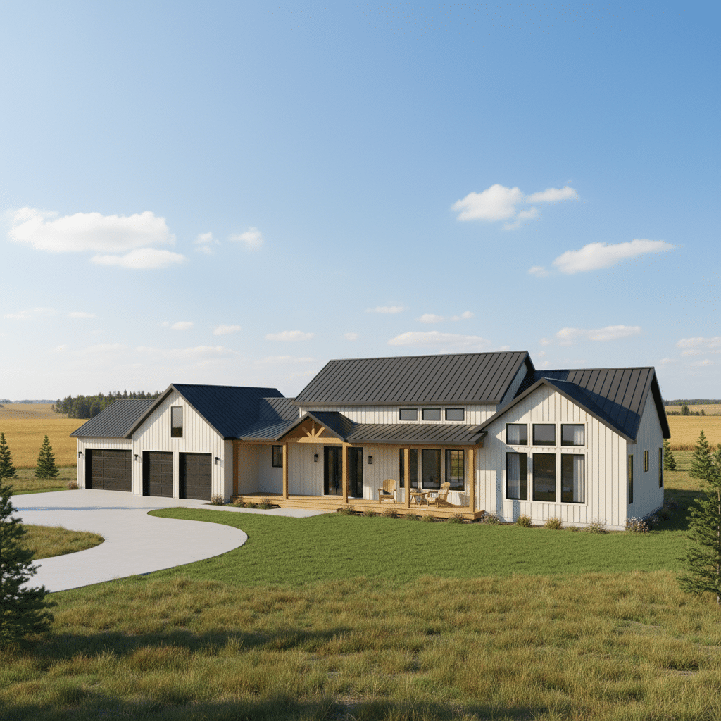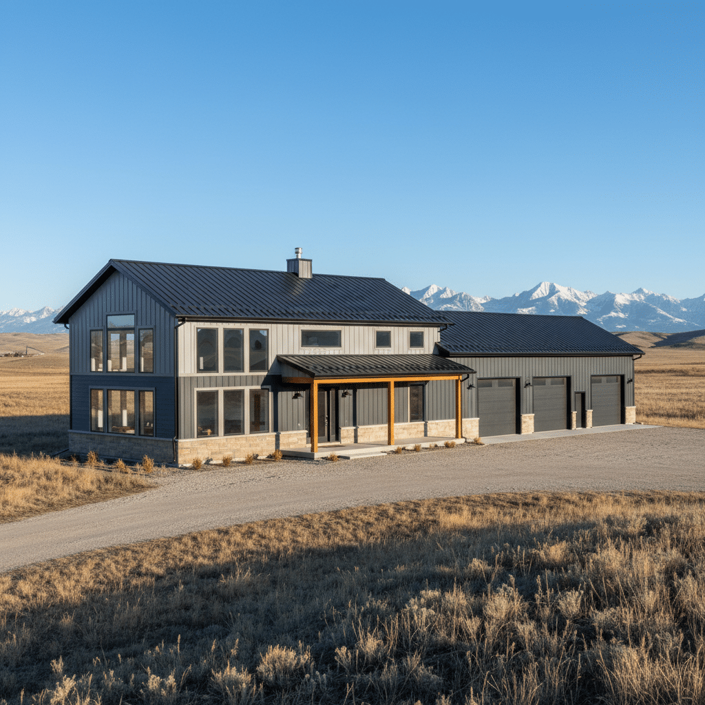 - Barndominiums – Don’t let the inclusion of “barn” fool you. What is a barndominium? It’s a modern, open-concept home with a durable exterior. Often, they combine residential living spaces with garages, workshops, or storage under one roof.